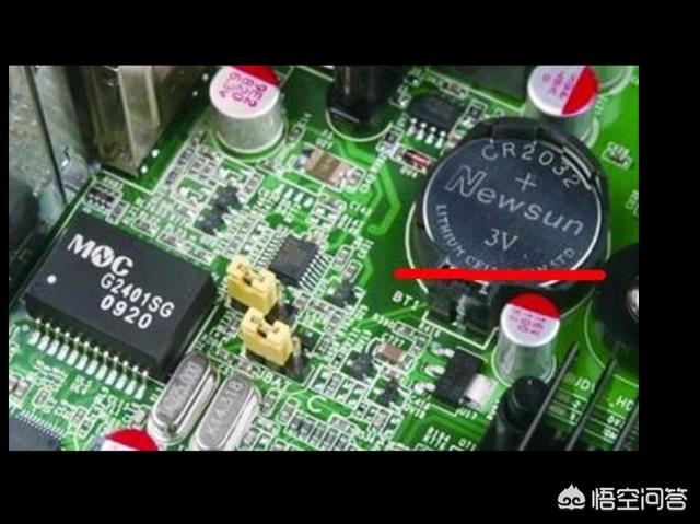 ,正负极反方向安装在主板电池位置上15秒钟,找到主板电池附近的跳针帽然后进行主板默认设置恢复,