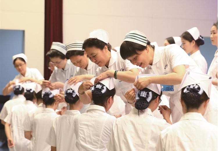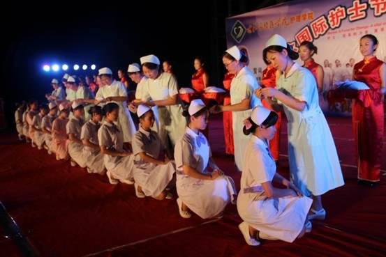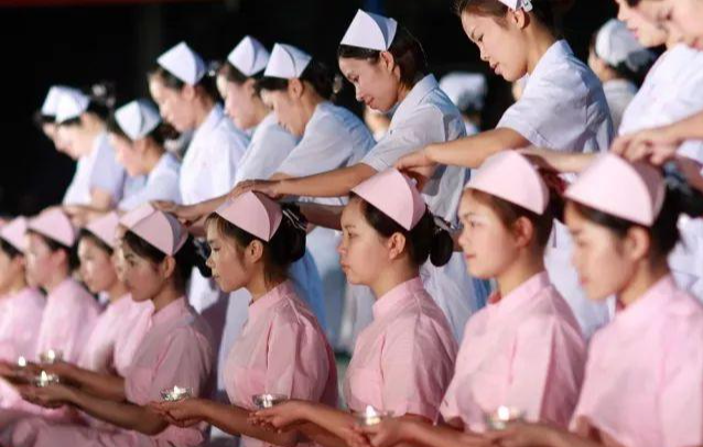 每逢5月12日国际护士节到来之际,医院、护士学校等都会 举行庄严的护士授帽仪式,授帽仪式是护生成为护士的重要时刻,在护理学创始人南丁格尔像前,护生直跪在护理前辈面前,前辈为护生戴上象征着圣洁的天使的洁白燕帽,护生接过前辈手中象征着“燃烧自己,照亮他人”的蜡烛,站在南丁格尔像前宣读誓言。“我宣誓:以救死扶伤、防病治病,实行社会主义的人道主义,全心全意为人民服务为宗旨,履行护士的天职;我宣誓:以自己的真心、爱心、责任心对待我所护理的每一位病人;我宣誓:我将牢记今天的决心和誓言,接过前辈手中的蜡烛,把毕生精力奉献给护理事业。”