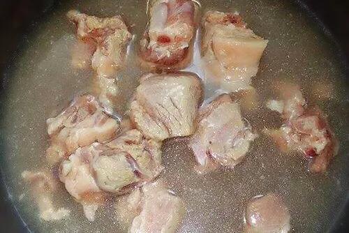 1、将排骨洗净切块,锅中水烧开后放入排骨焯水后捞出。