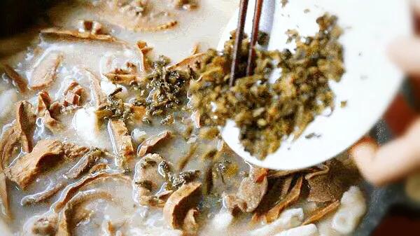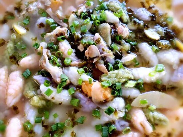 等菜差不多熟了,倒入做好的米筛爬,可以再加入些腌咸菜提鲜,也可以加入小青菜。炖煮至米筛爬在锅中浮起,再稍煮会儿,一碗鲜美无比的“米筛爬”就可出锅了。 可根据个人喜好,在碗中趁热加入醋、辣椒酱等调料。