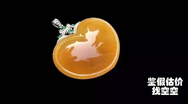 蜜糖黄翡一般种质为糯冰种,色泽黄中带红,质地清润细腻,绵软得像可以牵丝的糖浆。蜜糖黄翡器型大多饱满厚实,加上似透不透、若凝若动的形态,使翡翠清澈而不单薄,透亮而不夺目,正如蜂蜜的柔润、醇厚、浓郁,让人忍不住的想要拥有,想要品尝。