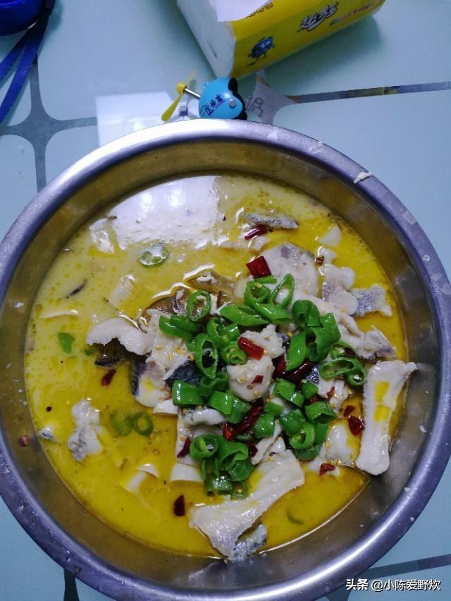 首先锅烧热,加入食用油少量猪油(加了会提升这道菜的层次哦!)下入葱姜蒜爆香,加入酸菜炒制大概两分钟,充分激发出酸菜的味道,加入鱼骨继续炒制一分钟左右,加入适量的水,水开慢慢熬制成汤汁变白,捞出锅内食材放入盘中垫底,随后慢慢加入鱼片,水开10秒关火捞出(这要取决于刀功,如果不把握多煮10秒也无妨,毕竟安全最重要)最后锅内烧油,加入青花椒,线椒,干红辣椒段,淋入盘中!