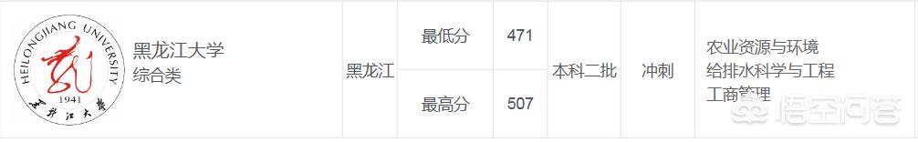 4.还有一所自主招生试点大学可以考虑,就是黑龙江大学,专业有农业资源与环境、给排水科学与工程等。但录取类型为“冲刺”。