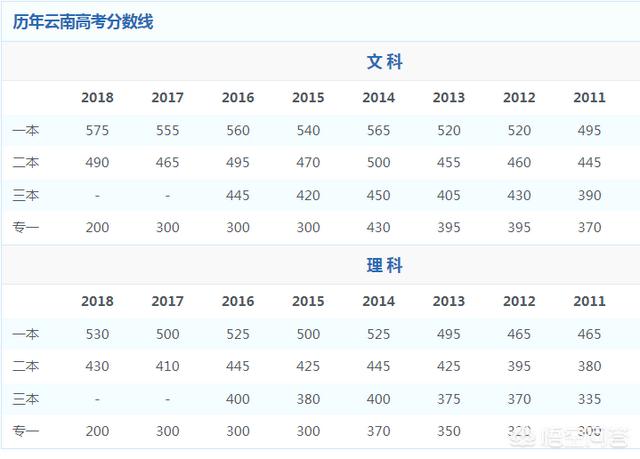 近三年云南省高考理科本一录取线情况是2018年为530分,2017年为500分,2016年为525分,近三年理科本一录取线平均分为518分;近两年云南省高考理科本二录取线情况是2018年为430分,2017年为410分,两年理科本二录取线平均分为420分;因为2017年之后,云南的本二与本三录取批次合并了,所以只能取2018年、2017年的数据来参考。