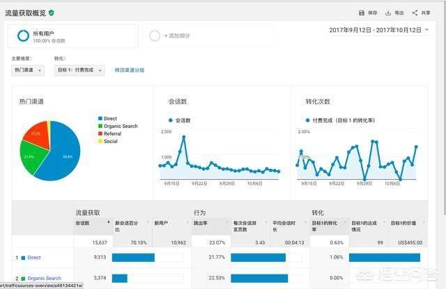 这个图是流量获取概览图,我们可以通过这个图来了解流量是从哪来的,这也能帮助我们做流量的优化甚至引流的工作。