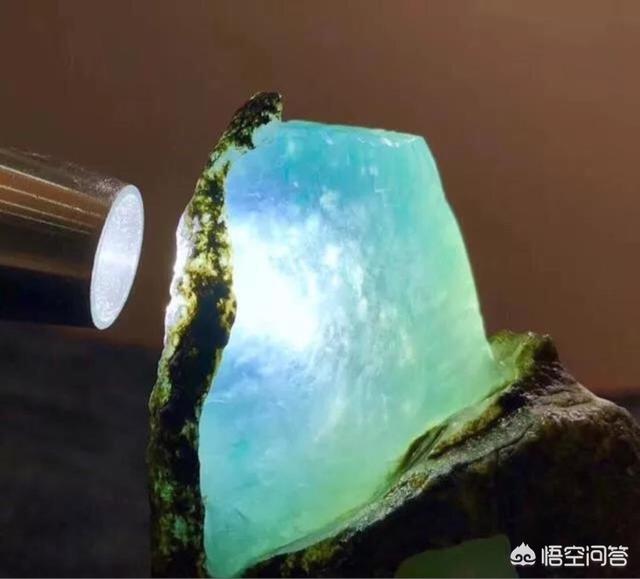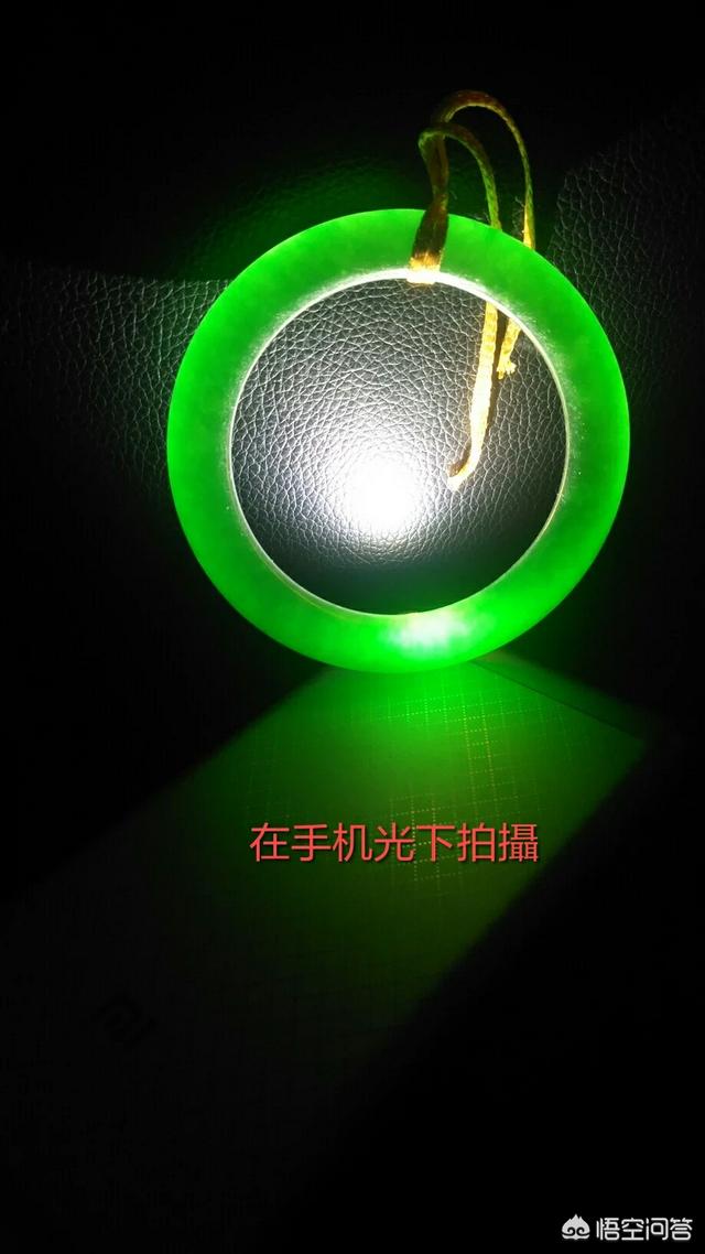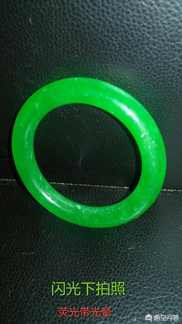 玻璃种翡翠〈指钠铝辉石〉有莹光光晕,这种光晕是任何有瑕疵的玻璃种翡翠都没有的。