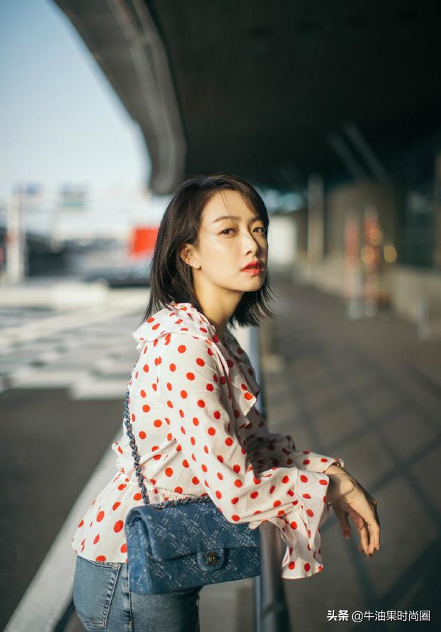 波点单品也是文艺复古风造型的标配,宋茜选一款红波点白底的上衣搭配牛仔裤,休闲惬意又有女人味。