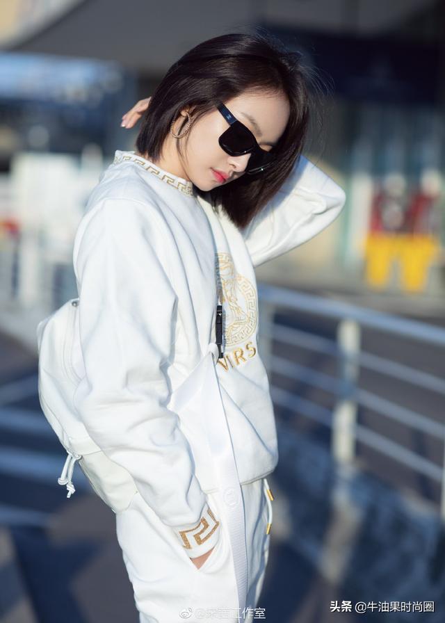 All white运动穿搭显得肤色更显白一个度,无需过多点缀也是相当耐看。