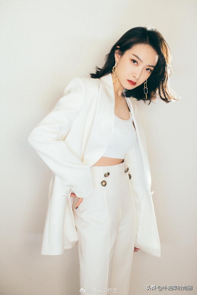 整身白色西服套装,干净简洁,再搭配上圆圈耳饰,气场太强了;