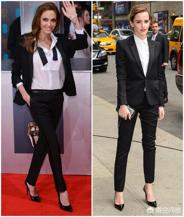 它的可塑性太强了,走红毯时,爱玛都用它来搭配礼服,所以,吸烟裤不能搭配的,可能只有裤子了吧。