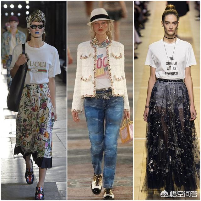 然而尽管如此,T恤仍然是时尚百搭的单品之一,毕竟它的款式太多了,圆领、V领、U领、吊带、一字肩等,还有喇叭袖、蝙蝠袖、落肩袖以及泡泡袖,还有各种版型,所以,这也奠定了T恤是时尚百搭单品的地位。