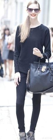 小黑裤的百搭不仅仅是它的版型,还有它的的颜色,毕竟黑色是所有颜色中最百搭的颜色了。