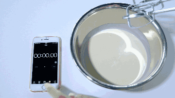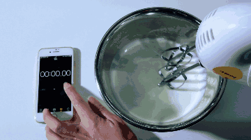 把每个奶油打发到干性状态,观察它所需时长。