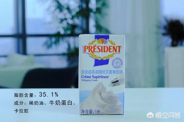 自己做蛋糕的话淡奶油的选择首先最好选动物奶油,品牌有总统,蓝风车,安佳,铁塔,都可以。