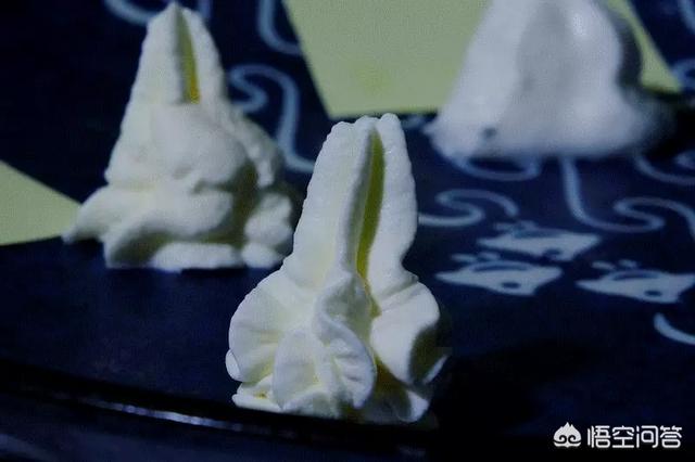 动物奶油中乳脂含量越高,口感越好,而且更易打发和定型。动物奶油打发后在超过25度的室温下放置一个小时就会开始融化变形,所以只能做比较简单的造型。