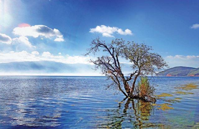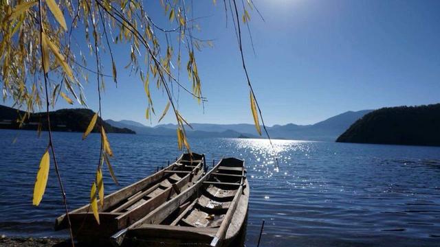 程海。程海湖是永胜县得天独厚的渔业生产基地,湖里共生长着15种土著鱼类。