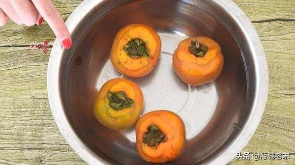 首先,把刚从树上摘下来的硬柿子用清水洗干净,(注意,这里指的硬柿子是指已经颜色为金黄色的那种,不能是青绿色的)然后把洗好的柿子放进一个容器里面,然后容器里倒入60度以上的温水,水莫过柿子即可。放置一个晚上,第二天就可以削皮开吃了,吃起来味道还很甜的,大家可以尝试一下!