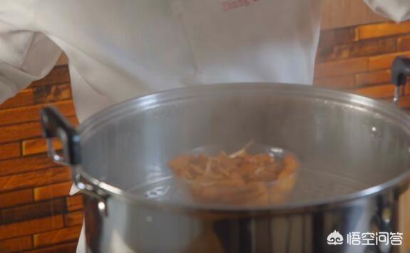 第三步:起锅烧油至8 成热下肉炸出油,这样做有两点好处,第一口感好,第二不腻!捞出控油!