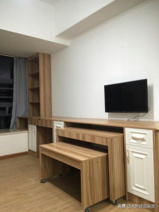 以收纳为主的电视柜在小户型空间中是很实用的,可以做成储物柜的形式,改善家庭的居住环境,担心满墙的柜体会为空间带来压抑感,选择局部或“分体”设置效果会好很多;做成书柜的款式,这对于困扰没有书房的家庭也会是一个新的选择。