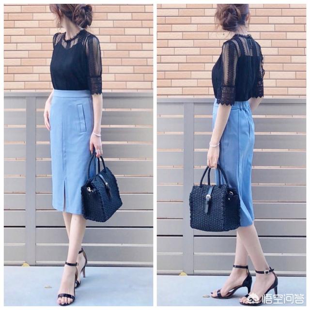 三、40岁的女性成熟有魅力,穿衣更应该追求精致、高级、得体;夏季一件黑色蕾丝雪纺衫搭配湖蓝色开衩半身裙脚踩黑色高跟凉鞋,将40岁的女性的气质诠释淋漓尽致。