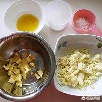 1、地瓜蒸熟去皮,压成泥,加面粉和糯米粉和成面团