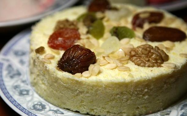 离火晾至温热程度时,在其表面适当涂抹香油,撒上芝麻,即可切块食用。