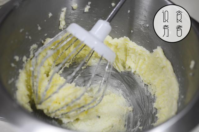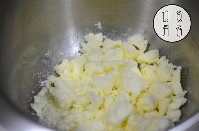 此时黄油应该已经恢复室温,将250g黄油、95g白砂糖,用电动打蛋器略做打发,一般1分钟出头即可。