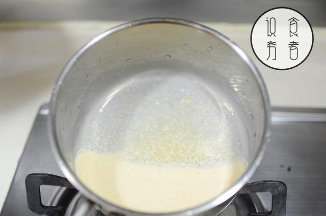 120g淡奶油/三花蛋奶、45g糖拌匀并加热至沸腾后关火。