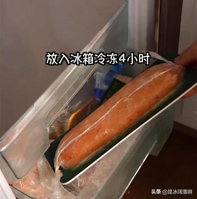 然后用保鲜膜固定好形状,放进冰箱冷冻4个小时