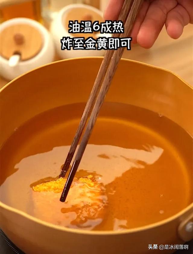 把油温控制到六成热,把裹好的鸡胸肉放入油中炸至金黄即可。