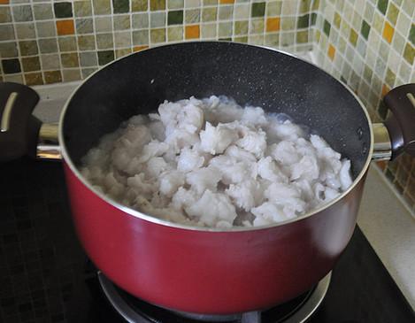 煎到猪油丁变成淡黄色的油渣,就差不多了。记得是淡黄色噢。