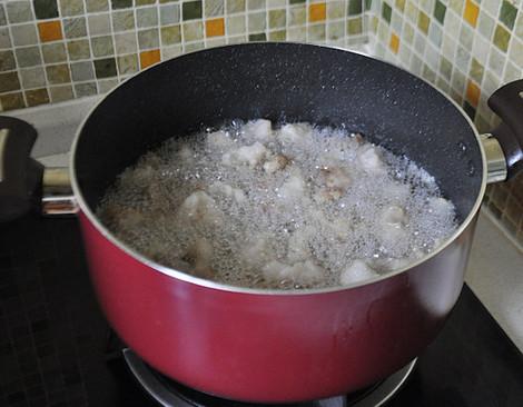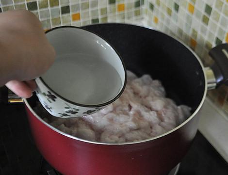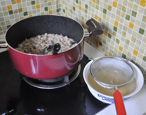 5、肉丁逐渐变小,水蒸发掉,油析出,液体变晶莹。