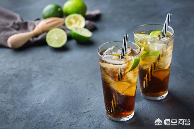 3. 把3/4个青柠挤进去~之后倒入可乐和朗姆酒~搅拌均匀~最后1/4个青柠做装饰~