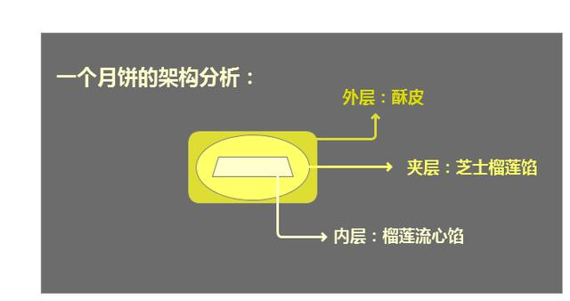 这款月饼从架构层面分析同样分为三层:最外层是酥皮,中间是榴莲芝士,最里面是榴莲流心馅。