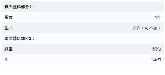 再烤6分钟后,拿出来,再刷一层蜂蜜水(蘸料2),再放回烤箱,再烤6分钟即可。