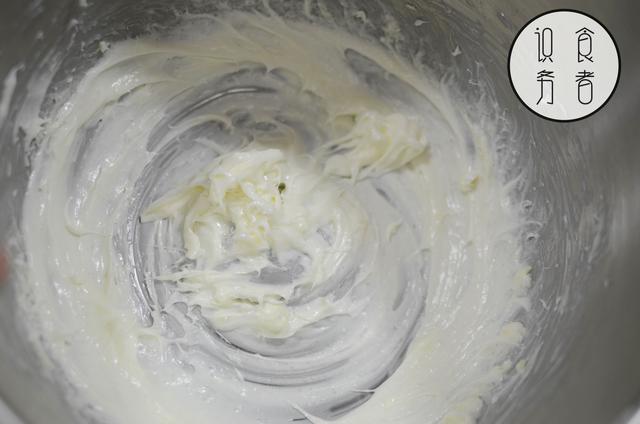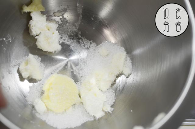 将80g奶油奶酪、45g黄油、40g糖用电动打蛋器打发均匀,大概打发1分钟足以。打发之前,奶油奶酪和黄油需确保恢复室温。