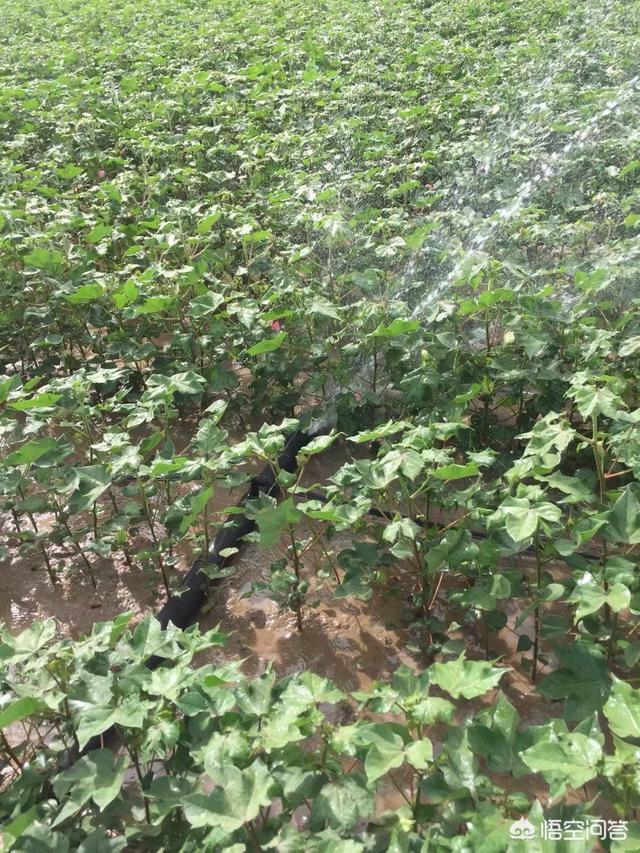 棉花是抗早作物,苗小时不易浇水,浇了苗黄生长缓慢,到6月份进入花铃期后进行浇水施肥,在高温情况下把地膜结掉,松土深耕防土地板结,降低膜下温度防止脱铃烂铃,这时正是用水之时适时浇好花铃水很有必要。