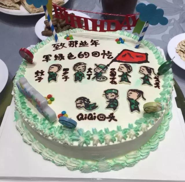 蛋糕上面被个性化设计,用食用色素在糯米低上印出来。