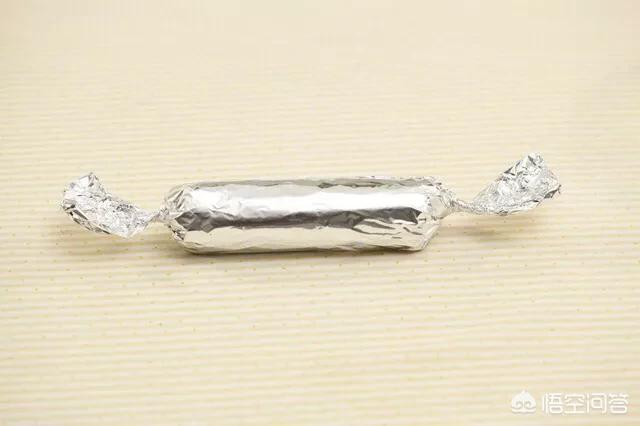 慢慢卷起锡纸,两头拧紧,做成大糖果的形状。