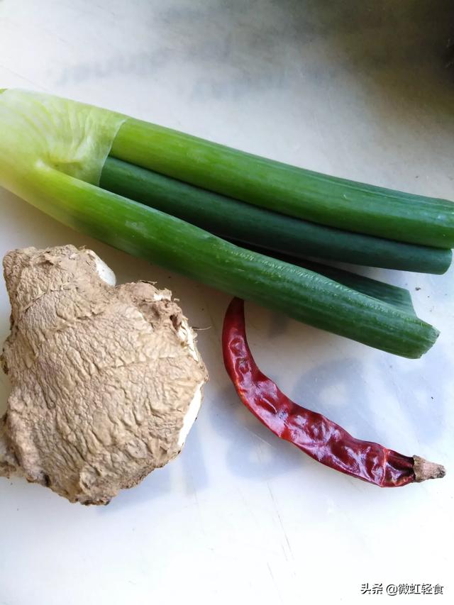 2、辅料:准备容易爆香的辅料,干辣椒、少量牛油火锅底料、葱、姜、蒜、花椒。