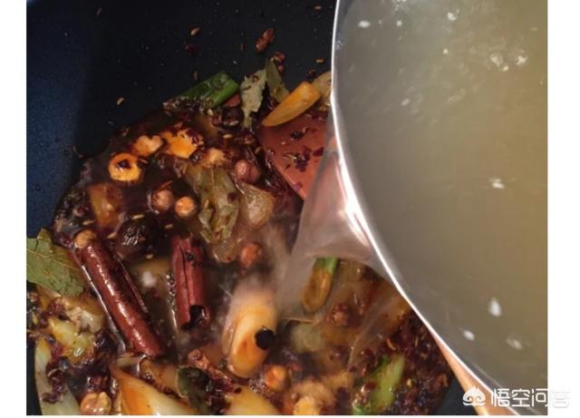 锅里食用油加热,加入咸菜杆,洋葱,大葱白,小火慢慢炸至金黄色,然后漏勺捞出,锅中加郫县豆瓣酱炒香,再加入洋葱,大葱和不等调料(小茴香,花椒,麻椒,白胡椒,孜然)翻炒出香味,再加入剩余调料(香叶,八角,桂皮,草果,肉蔻,干辣椒),继续翻炒