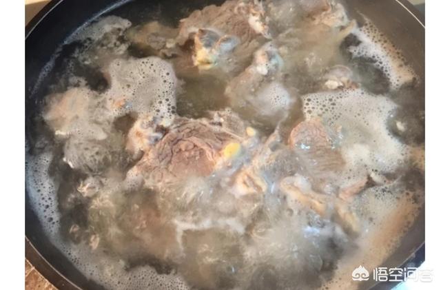 3.羊蝎子靠泡水里还去不干净血水,还须焯水,冷水下锅,加料酒