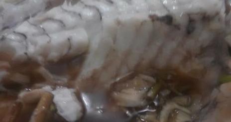 九、出锅嘿嘿。吃完上面一层,可以直接把鱼主骨提起来接着吃下面一层。