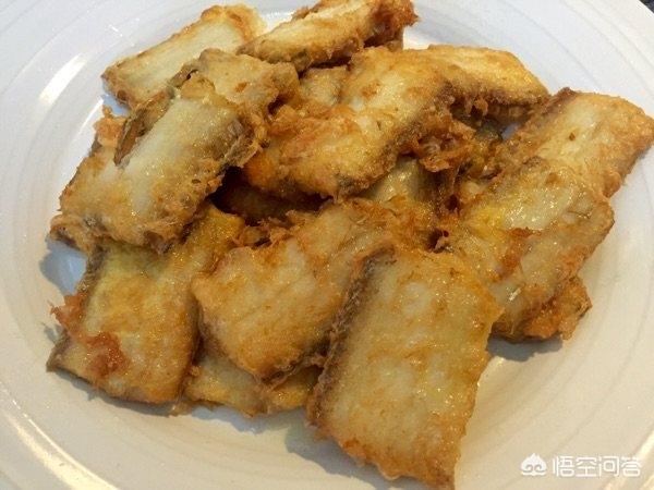 7.煎好的带鱼回锅二次煎炸,带鱼保证金黄