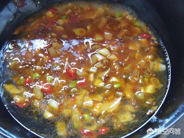 9.再放入泡椒,泡姜,葱蒜,花椒粒爆香,如上图
