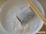 2.将腌制好的带鱼表面薄薄的蘸上一层面粉。