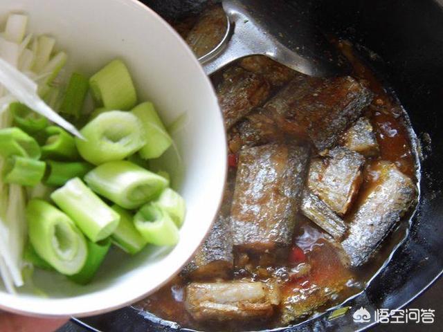 1.准备食材:把带鱼去内脏并洗净后切成段,香葱切颗粒,如上图