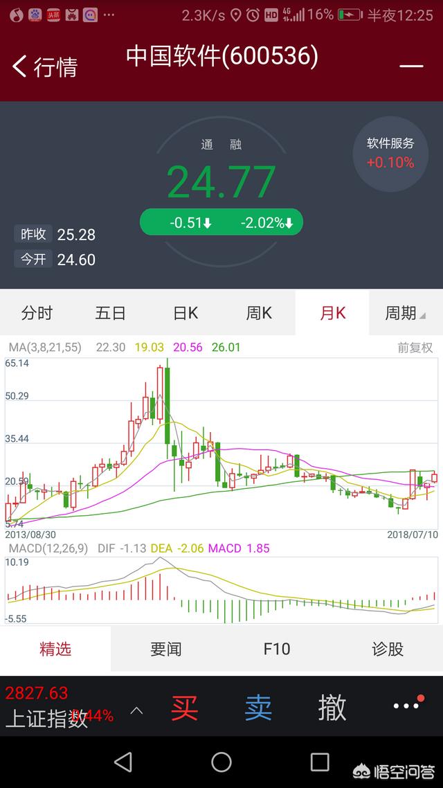 这是中国软件的周线图片,可以看见它上面的缺口形成了压力线,也就是这个位置就有点高了。