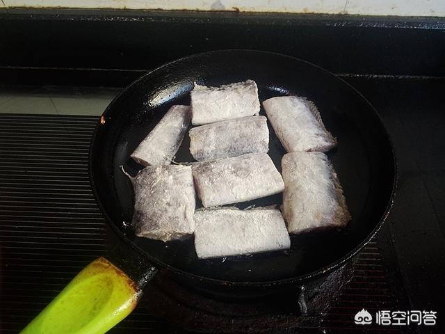6.锅里油热,放入带鱼块,
