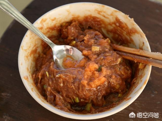 2.肉泥里面加入蛋液1汤勺、大葱和生姜各5克、盐1克、糖1克、生抽10克、少许的胡椒粉调拌匀后,再倒入1汤勺虾籽油拌匀。